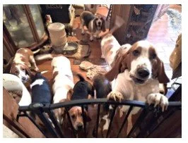 This rescue started with a heartbreaking call. A basset-loving woman reached out after her friend passed away. Her friend’s husband was left caring for 12 bassets in a small double-wide trailer. They had never been outside, had no fenced yard, and were paper-trained. One sweet mama dog was already in labor.