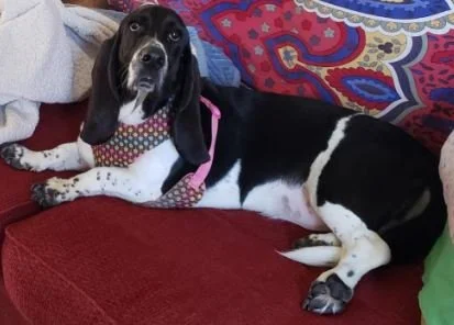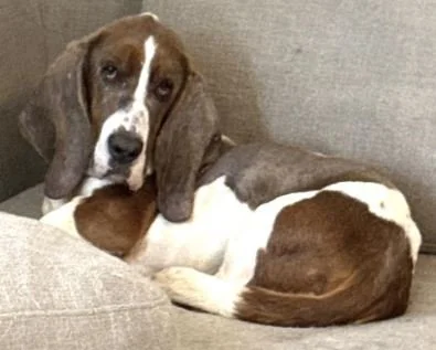 Rosa, 4 1/2 y/o used for breeding. Still very timid, but gets along with other dogs in foster home. She would benefit from having a confident dog companion to go on walks.
